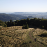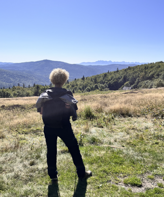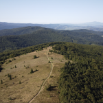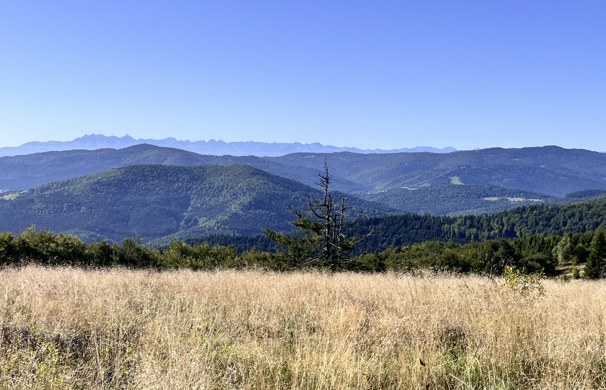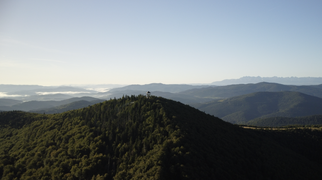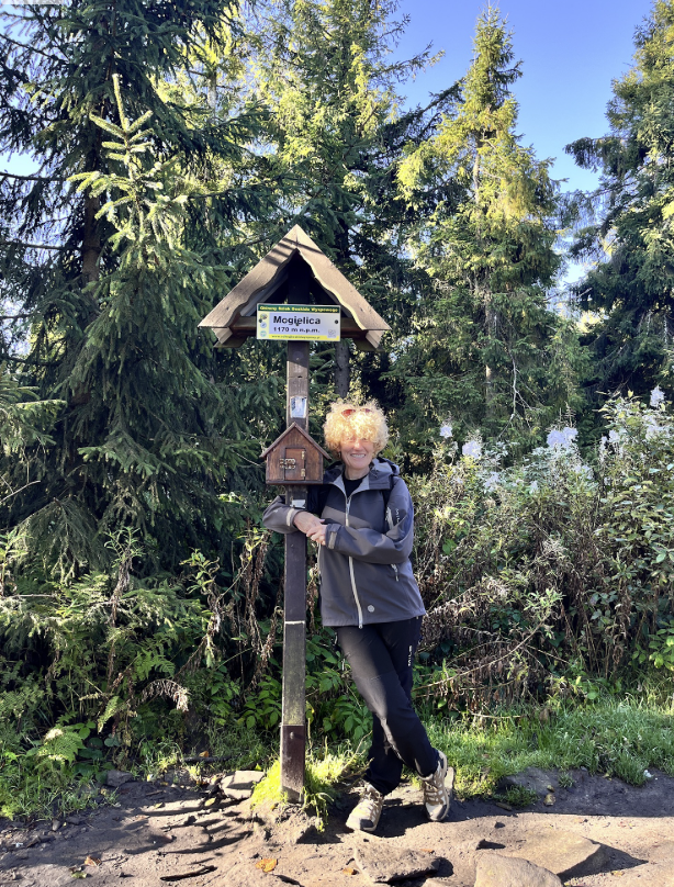 W powietrzu szukałam ujęć, które pozwolą mi zobaczyć to, czego normalnie oczy nie obejmą 👀. Filmuję i fotografuję, bo mam swoją wizję, jak to potem złożyć w całość – ale, jak z radiem, nie zawsze wychodzi tak, jak by się chciało. Na Mogielicy był tylko krótki rzut okiem z wieży obowiązkowa fotka pod tabliczką i dalej w drogę na polanę Stumorgową.