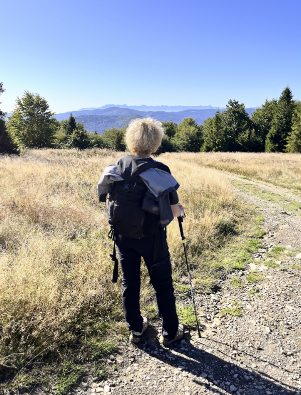 Droga powrotna miała niespodziankę, która w moich wędrówkach zdarzyła się pierwszy raz: zabrakło mi wody🫨. Została resztka, którą wydzielałam kropla po kropli, bo wiedziałam, że przede mną jeszcze kilka podejść, a w ustach sucho. Jagód czerwonych oczywiście nie ruszałam 🚫🍒, ale znalazłam jeżyny – które dawały chwilę ulgi i tak dotrwałam do Mogielicy. Ostatnie krople na szczycie i … ruszyłam w stronę parkingu – to było najszybsze zejście w moim życiu 🤣