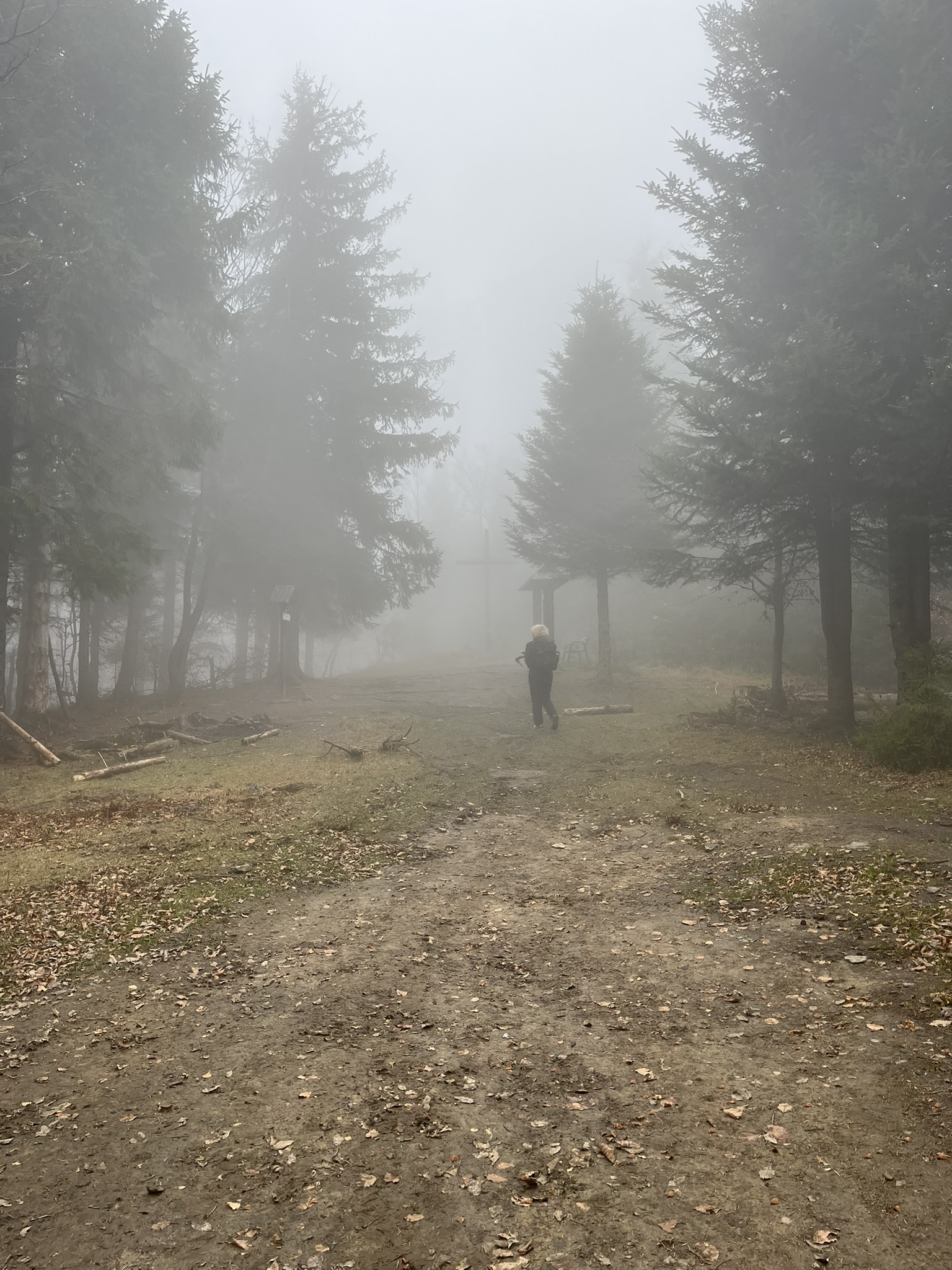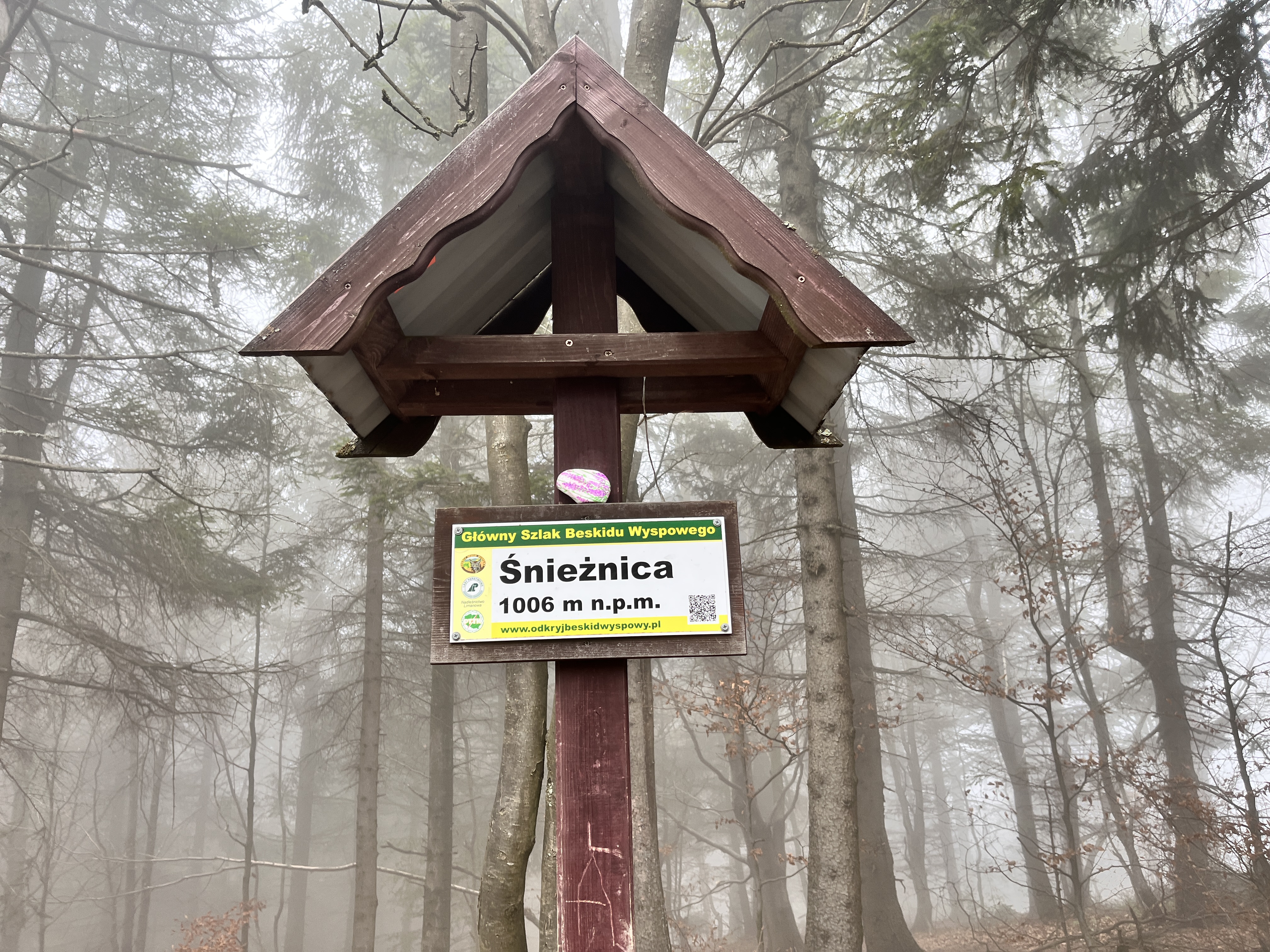 Potem szybkie zejście do parkingu i kierunek Śnieżnica. Tam już zupełnie inny klimat — las i „mygła”, jak to określiło moje dziecko. Ale mimo tego wesoło i lekko. I druga niespodzianka: choć szczyt w lesie, mgła wszędzie, to łączności szły jedna za drugą! W sumie 18 łączności 😊 Siedziałabym tam pewnie o wiele dłużej, gdyby nie to, że moja latorośl zaczynała zamarzać🥶. Wizja tłumaczenia przed policją, skąd mi się wzięło dziecko z odmrożeniami🙃, skutecznie sprowadziła mnie na ziemię — zakończyłyśmy aktywację i ruszyłyśmy na dół.